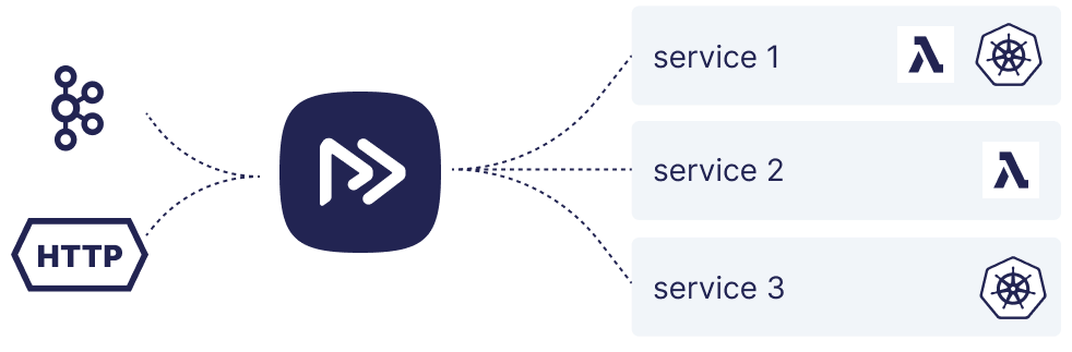 With Restate, you build applications using one of the available Restate SDKs, and then deploy your services as a serverless/stateless HTTP servers, for example as Knative services. Right now Restate supports Golang, Java, Kotlin, Typescript, Rust and Python. To invoke your services, you send requests to Restate rather than to your service directly, such that Restate acts like a “proxy” between your clients and your services.