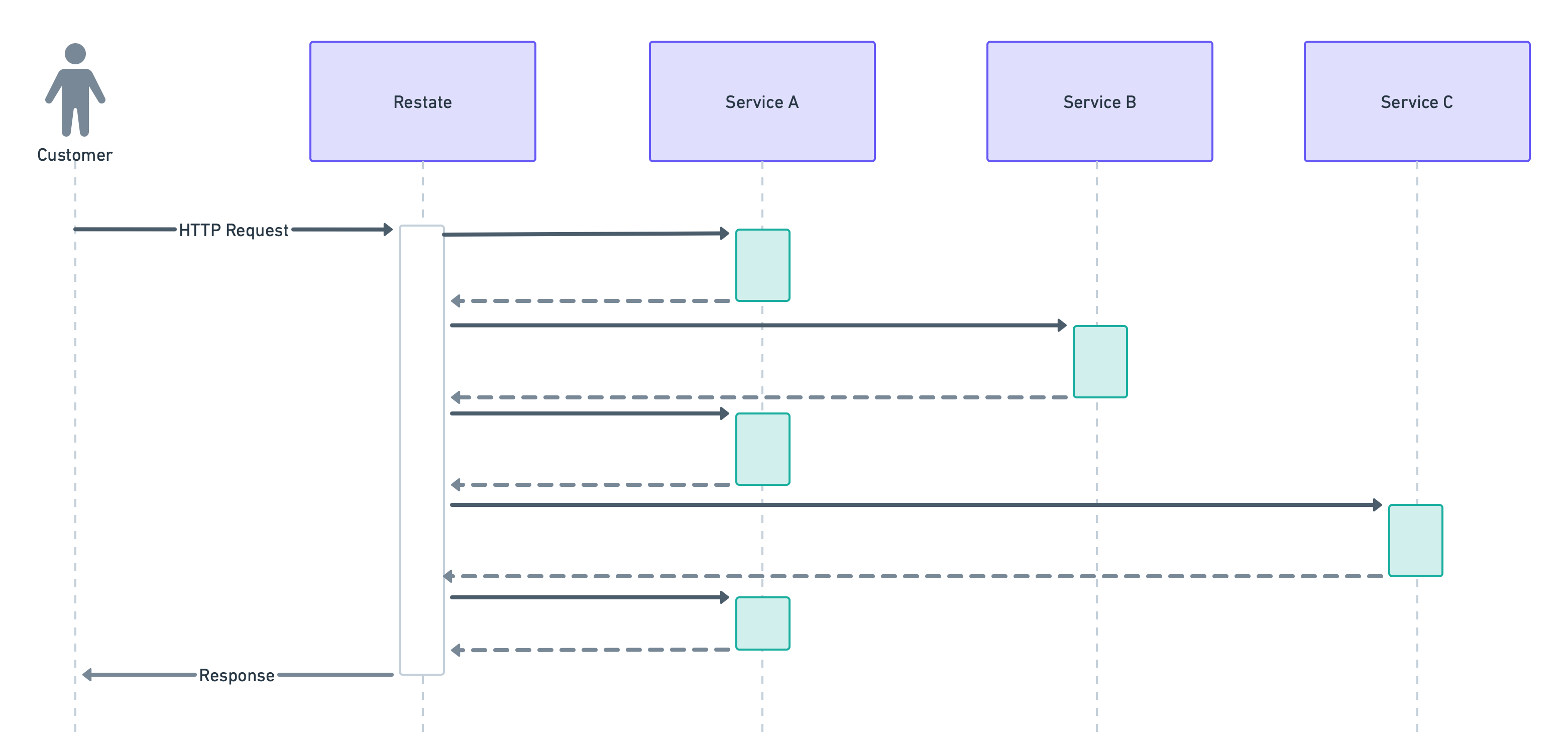 These constraints push developers towards services like AWS Step Functions as the outermost orchestration layer for a number of short-running Lambda functions. This might also necessitate the use of a state store such as DynamoDB to persist intermediate state. Today we’re going to talk about a different approach that we think you’re going to love; suspendable Lambda functions, which we’ve implemented with durable async/await in a new open-source project called Restate.